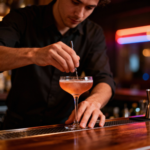 Equipe especializada em coquetelaria criativa e clássica. Drinks personalizados preparados na hora com técnica, qualidade e apresentação impecável.