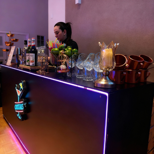 Estação completa de bebidas autorais para seu evento, com bartenders profissionais e drinks exclusivos que impressionam e surpreendem seus convidados.
